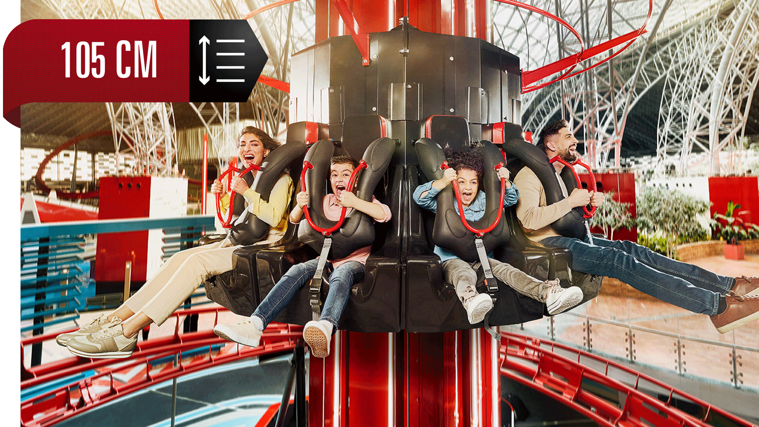 - Minimum Height Requirement: 105 cm (3.44 ft)