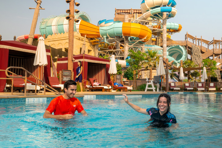 Upgrade your water park experience with an exclusive private pool and comfortable cabanas, offering the perfect place to relax and recharge before returning to the excitement.